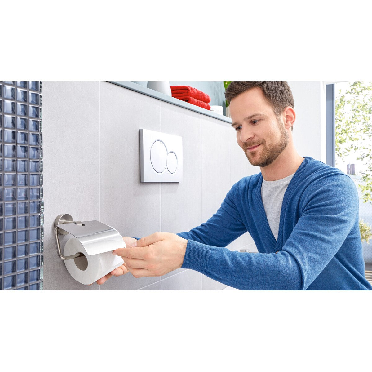 tesa® Nooblesse Toilettenpapierhalter mit Deckel, Edelstahloptik, inkl. Klebelösung